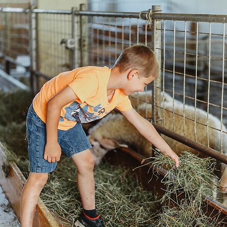 With adorable animals waiting outside, it’s much easier to get the little ones to head outdoors. You’ll find our farm animals in the barn, in the meadows, or, in summer, sometimes up at our alpine pasture, Henebichlalm. A visit to the animals not only brings joy to children but also ensures fresh air and physical activity.